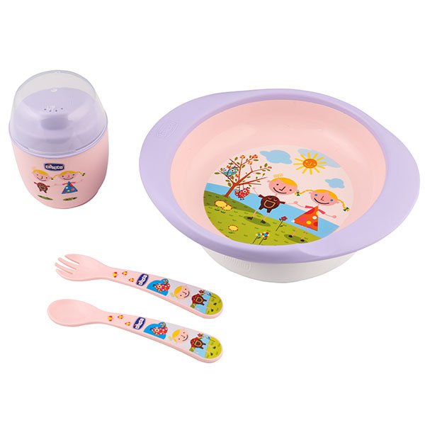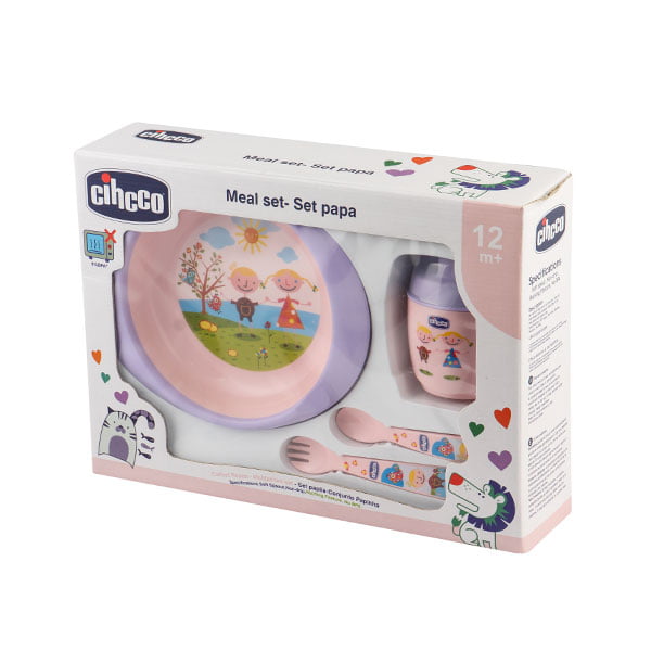 ست 4 تکه ظرف غذا استپ دار کودک سیکو رنگ صورتی شامل قاشق ، چنگال ، لیوان آبخوری و بشقاب گود می باشد.