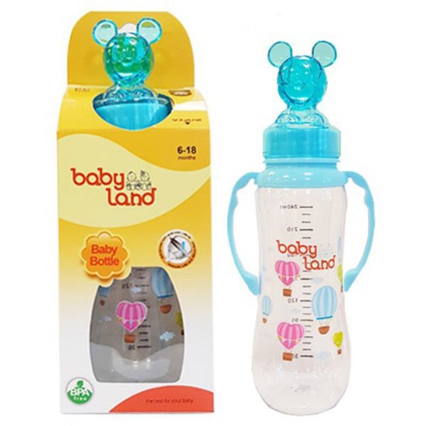 شیشه شیر کلاسیک عروسکی دسته دار بی بی لند 240 میلی لیتر مدل 477Baby land milking bottle 240ml Code 477