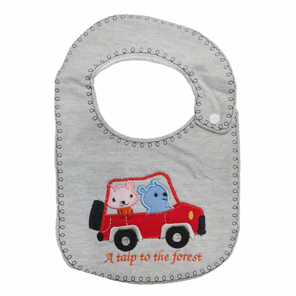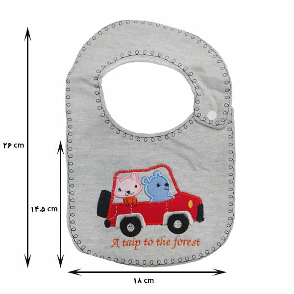 پیشبند گلدوزی کوکالو طرح سفر به جنگل از جنس پنبه تولید شده و مناسب پوست لطیف نوزادان می باشد.